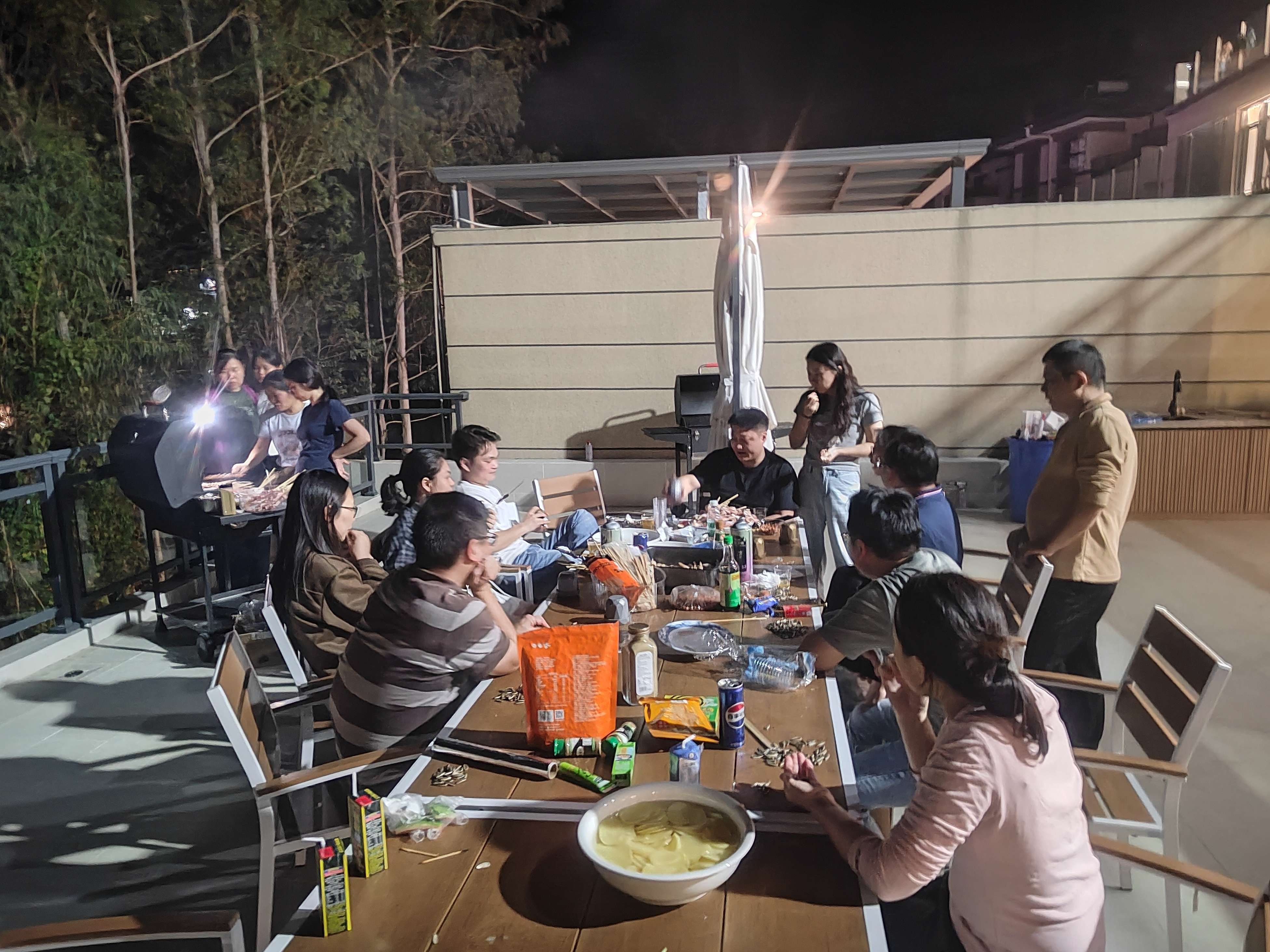 随着夜幕降临,本次团建的重头戏——烧烤与火锅晚宴正式拉开序幕。后勤的同事早已备好琳琅满目的食材,大家自发分工,有的化身“烧烤大师”精心烹饪,有的负责准备火锅配料,默契配合,其乐融融。炊烟袅袅,香气四溢,在举杯交错和谈笑风生中,平日工作中的伙伴成了亲密无间的家人,彼此的情谊在美食与欢笑的催化下迅速升温。