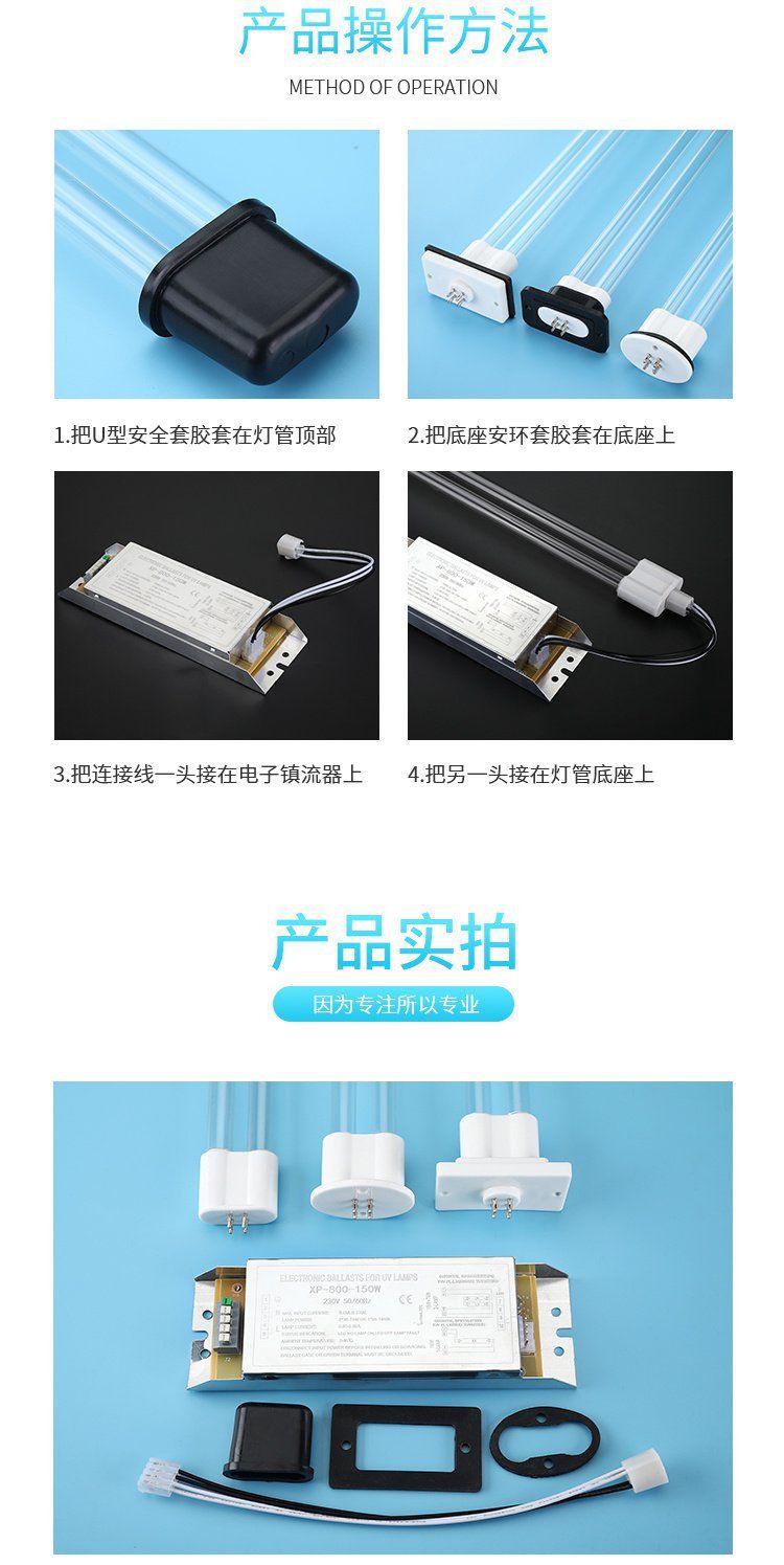 uv光氧灯管150w工业废气处理光解催化高臭氧紫外线杀菌灯管