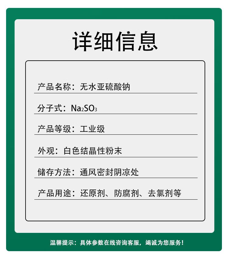 化工行业人士皆知,化工原料价格每日波动。因此,网页报价可能与当前实际价格略有出入,本报价并非固定不变。 在下单前,请务必与卖家联系以获取当日实时价格。 另外,由于各地运费差异,请与卖家协商运费。若未经协商填写运费,买家有权选择取消订单。感谢您的理解与配合! 我们提供免费技术配方服务,并拥有完善的售后团队,为您的使用保驾护航。 欢迎随时拨打24小时销售热线:189 2348 8323